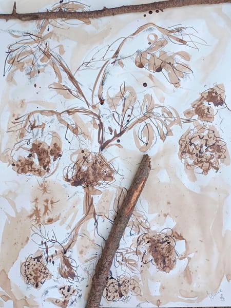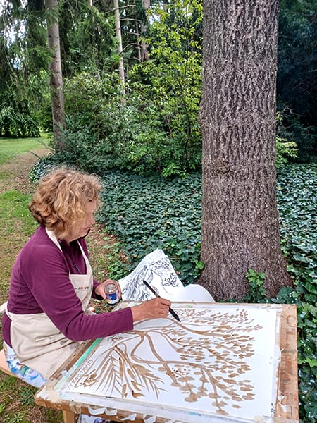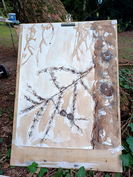 Unter freiem Himmel - Steffi Dornbach zeichnet die verzweigten Strukturen eines großen Baumes
