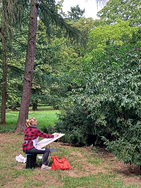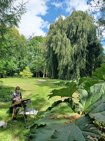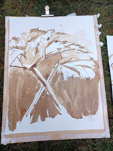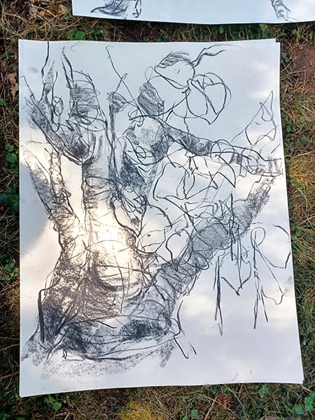 Mit Sack und Pack in die Kasseler Karlsaue - Hier entstehen großformatige Kohle- und Tuschezeichnungen inmitten der Natur