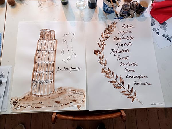 Von Weinreben und schiefen Türmen bis hin zu Gondeln und Vespas ließen wir uns von italienischen Klassikern inspirieren. Mit Tusche, Feder und Pinsel entstanden detailreiche Zeichnungen mit mediterranem Charakter – ein kreativer Ausflug in die Ferne. Die liebevoll erstellten Arbeiten spiegeln den Zauber Italiens wider und bringen das südliche Lebensgefühl in unsere kreative Arbeit.